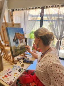 It’s not a group project where everyone paints the same thing — each person works on their own artwork, at their own pace, with individual support.